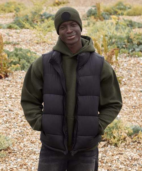 Contains 100% certified recycled material. Recycled polyester made from 100% rPET. Contains at least 50% recycled polyester. Ribbed knit. Single layer knit. Cotton twill circular patch for decoration. Engineered crown for maximum comfort. Cuffed design for optimal decoration. TearAway label for ease of rebranding.