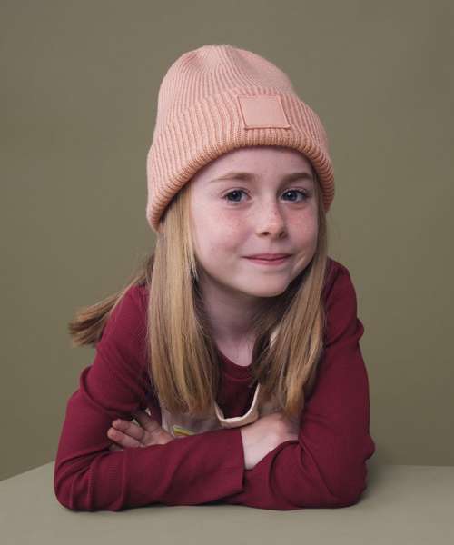 B336B: Kids deep cuffed tonal patch beanie