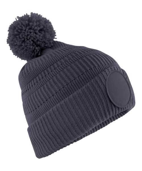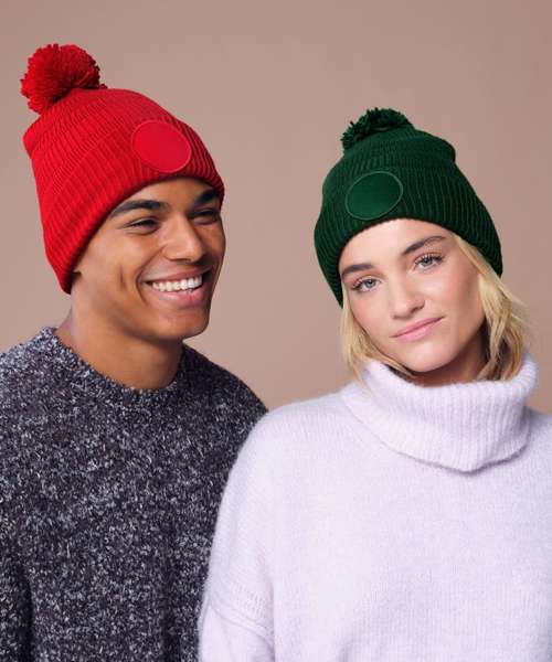 Contains 100% certified recycled polyester. Basket weave knit. Double-layer knit. Self-coloured pom pom. Microfleece lining for comfort and warmth. Cuffed design for optimal decoration. TearAway label for easy rebranding.