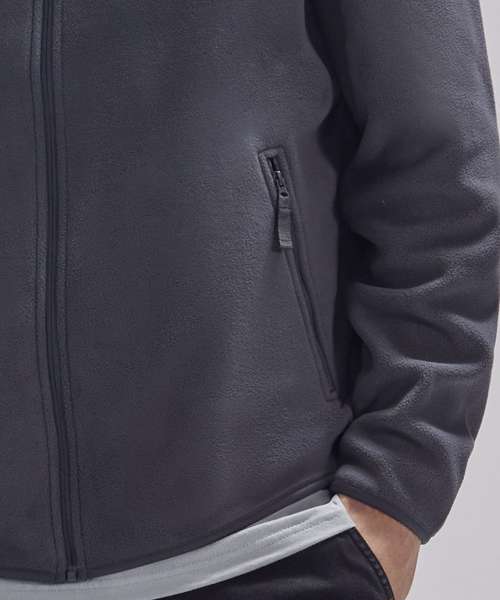 Protection and performance. Supersoft, lightweight, thermally-efficient micro-polar fleece. Thin filaments (144 denier) allow high-density knit for maximum insulation. Bound cuff and hem for wind protection. Chin protector for extra warmth. Quick-drying. True gender-neutral style. Two front pockets with zips. Convenient hanging hook for easy storage. Tested and approved for decoration. ‘B&C No Label’ solution for easy rebranding. 100% recycled polyester.