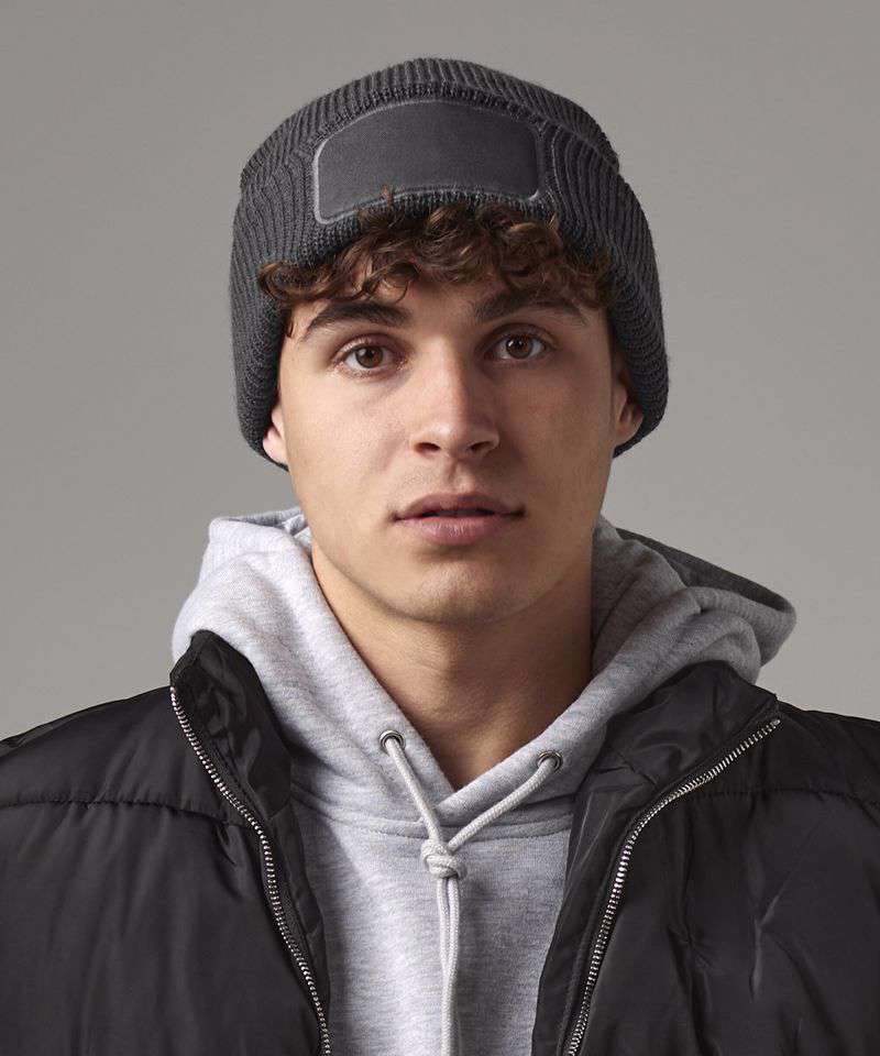 Double-layer knit. Thinsulate™ lining. Cotton twill patch for printing. Print area – 10cm x 5cm.