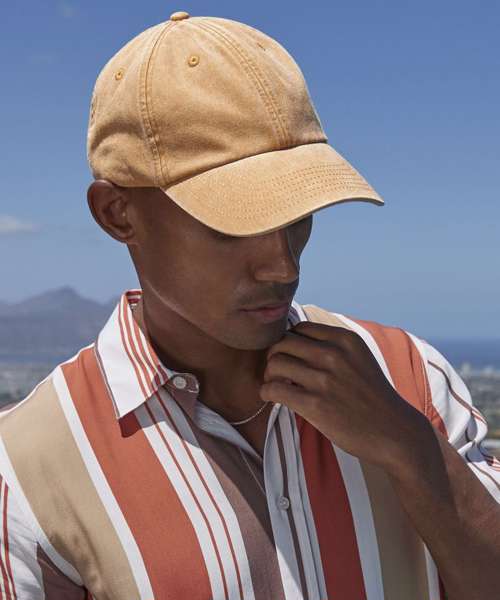 TearAway label for ease of rebranding. Low profile 6 panel design. Soft unstructured crown. Vintage styling. Pre-curved peak. Stitched ventilation eyelets. Self fabric strap with brass effect buckle.