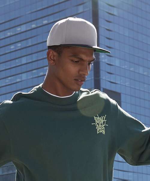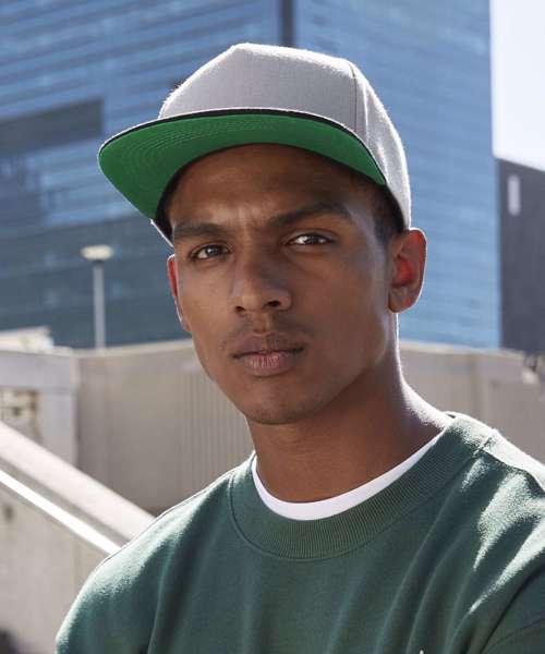 - Flat peakGreen underpeakRetro-style snapback size adjuster