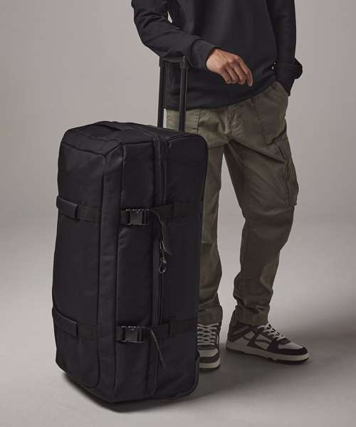 TearAway label for ease of rebranding. Convenient dual compartment design for easy packing. Lockable main compartment zip. External identification window. Removable Rip-Strip™ handle wraps for ease of decoration. Dual compression straps. High stability retractable twin-handle. Durable front grab handles. Padded top and side handles. Durable integrated skate wheels. Can be further customised with BG485 Escape handle wrap.