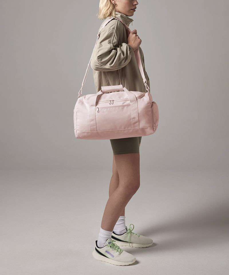 Contains 100% certified recycled polyester. PU coated base panel. Two-way zipped opening for easy access. Shoe tunnel. Zipped front pocket. External mesh pocket. Internal mesh pocket. Padded hand grip. Detachable, adjustable shoulder strap. TearAway label for ease of rebranding.