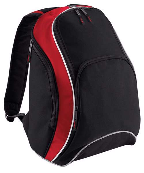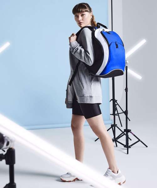 Padded adjustable shoulder straps. Enhanced visibility. Reflective piping. Zippered front pocket. Zippered side pockets. Internal mesh pocket. Water bottle pocket. Media pocket. Headphone port. Padded back panel.