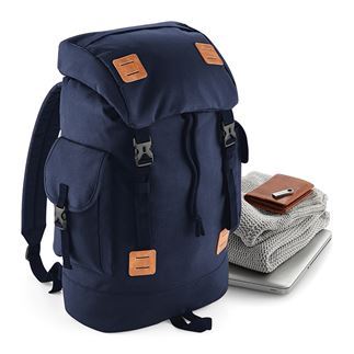 TearAway label for ease of rebranding. Heritage styling. PU accents. Drawcord closure. Zippered flap pocket. Side pouch pockets. Internal slip pocket. Padded back panel. Padded adjustable shoulder straps. Grab handle. BSCI certified. Reach certified.