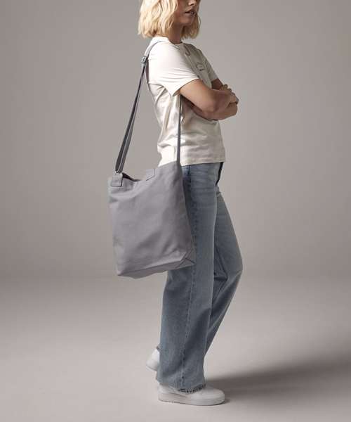 Unisex styling. Adjustable self fabric shoulder strap. Internal valuables pocket. Press stud closure. Handle length 37cm.