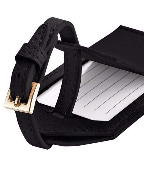 TearAway label for ease of rebranding. Saffiano fine grain. Soft-touch lining. High shine gold metal trims. Two-piece set.