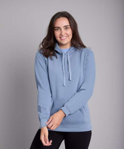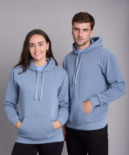 Made with 100% soft ringspun US cotton face for enhanced printing. Jersey-lined hood with colour-matched flat cord. Back neck patch for easy customisation. Rolled-forward shoulder. Pouch pocket. Relaxed fit, side-seamed body. 1x1 rib cuffs and waistband with spandex for enhanced stretch and recovery. Signature twill label and back neck twill tape. Made with OEKO-TEX Standard 100 certified low-impact dyes. Clean pigment dye colours are salt-free.