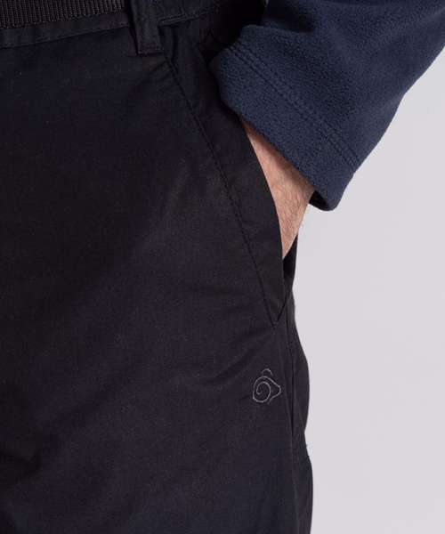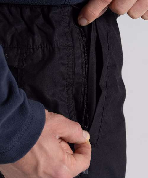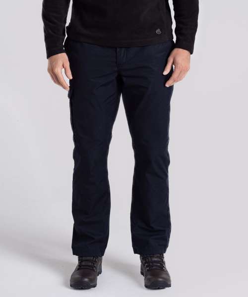 Durable trousers with a water-resistant finish, featuring 9 pockets. Peached recycled polyester and recycled cotton with EcoShield DWR finish. 100% recycled zip tapes. UPF 40+ sun protection and Nosi Defence technology.
