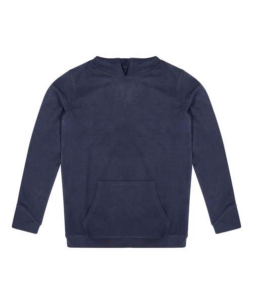 100% Organic hoody, with brushed inner and peached face. Kangaroo pocket, angled cuff detail and no drawcords for sleek look.
