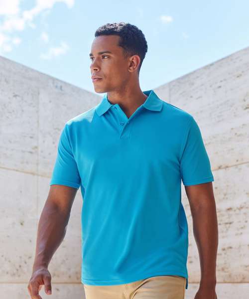 Men’s CoolPlus® wicking polo shirt. Micro piqué. Flat knit collar. Hemmed sleeves. Side vents for ease of movement. Wicking yarn for prolonged performance. Excellent colour retention. Minimum iron. Easycare.