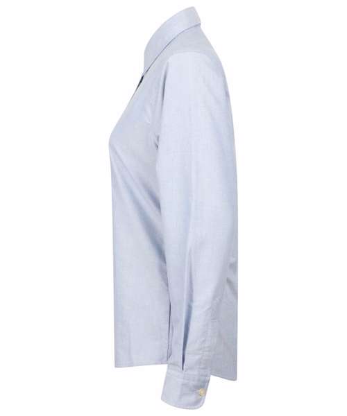 Cotton-Rich Classic Oxford with wrinkle resistant finish. Pearlised buttons on blue options, DTM on all others. Women's fit with shaped side seams and scooped hem. Adjustable cuff.