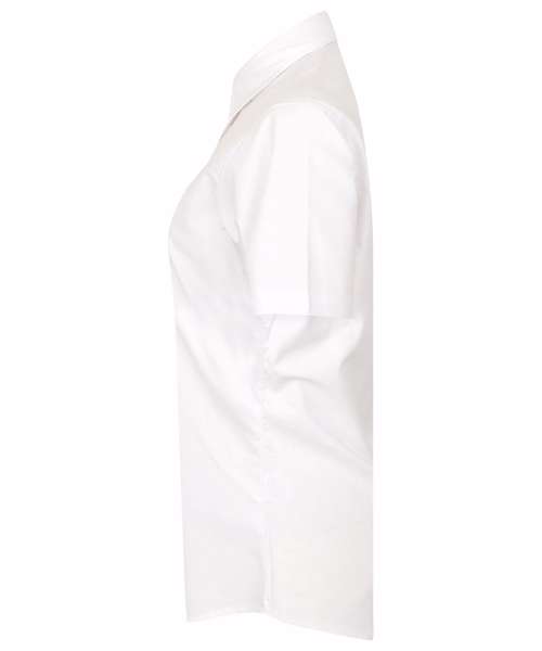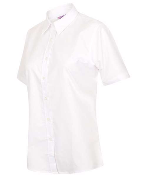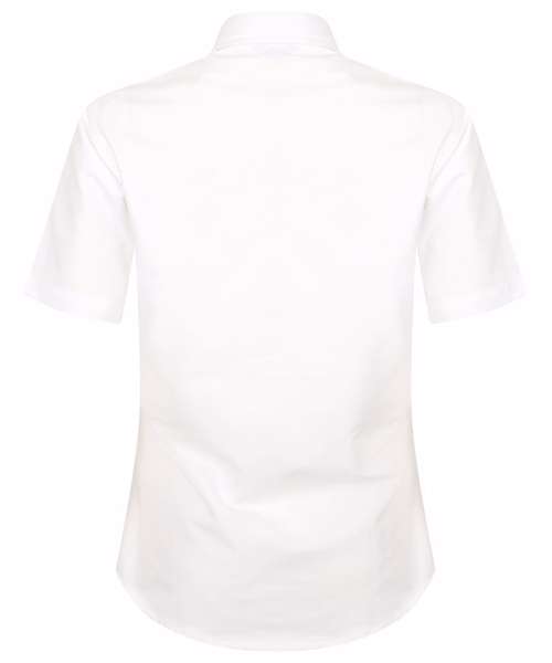 Classic Oxford with wrinkle resistant finish. Pearlised buttons on blue options, DTM on all others. Women's fit with shaped side seams and scooped hem.