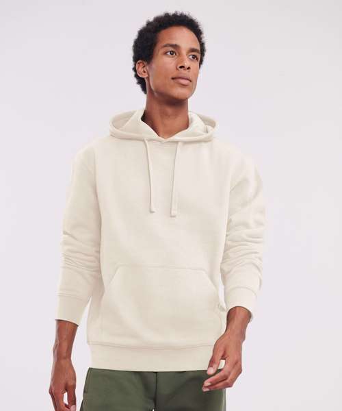 Ultra contemporary hooded sweatshirt in premium 3 layer fabric for a fuller, more substantial and luxurious handfeel. Coverseamed armholes, cuffs and hem. Coverseam around hood. Herringbone neck tape. Flat, chunky drawcords. MP3 access. Buttonhole eyelets. Front facing shoulder seams. Premium finishing. Part of the Russell sweatshirt family that continues to perform wash after wash.
