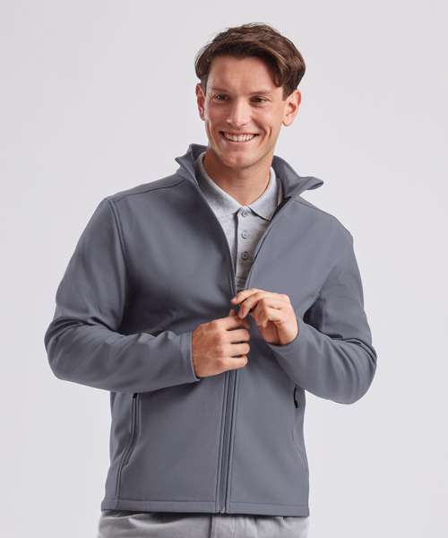 The Essential softshell jacket is a two-layer softshell jacket in a classic design. The outer face material is made from 94% recycled polyester and 6% elastane, while the fleece lining is 100% recycled polyester. This jacket is treated with a fluorine and PFC-free finish from the BIONIC-FINISH® ECO brand. The Essential softshell jacket is the perfect companion for cooler days and an absolute must-have for modern corporate and promotional clothing.