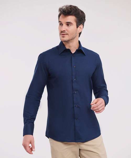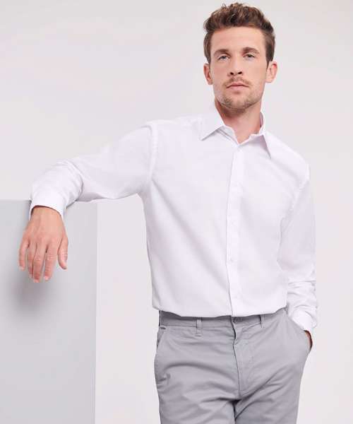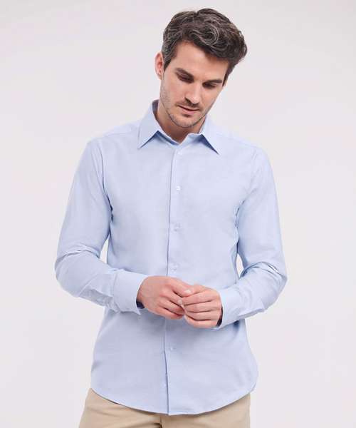Ultra smart Oxford shirt now has tailored and classic fit options for gents and an elegant tailored fit for ladies, in a high quality Oxford fabric with excellent finish. Contemporary, tailored fit with stiffened semi-cutaway boned collar. Stylish, rounded edge 2 button adjustable cuff, with option for cuff links. Rounded hem.