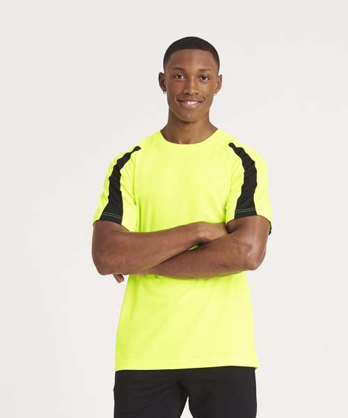 Contrast inserts on front and back sleeves. Self-fabric crew neck. Raglan sleeve design. AWDis’ own Neoteric™ textured fabric with inherent wickability and quick drying properties. Self-fabric taped back neck. Simple tear off label makes it perfect for rebranding. UPF 30+ UV protection.