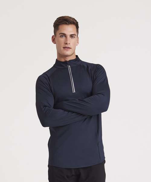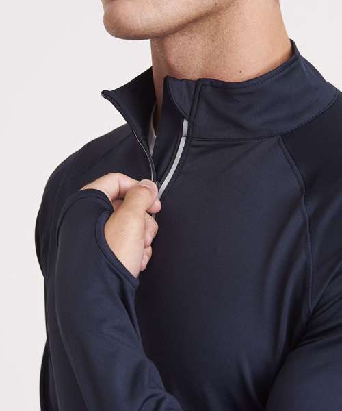 AWDis’ own Cool Flex blended fabric containing elastane that provides stretch for comfort and a great fit. Active fit. Reflective details. Raglan sleeve for ease of movement. 1/2 zip with stand-up collar for ventilation. Chin guard reduces irritation. Simple tear-out label makes it perfect for rebranding.