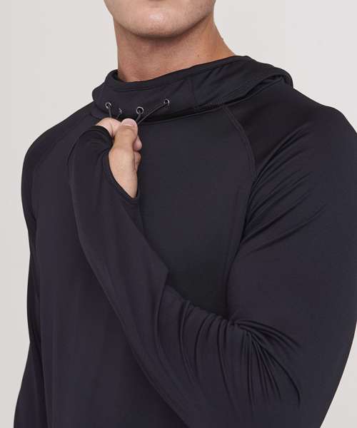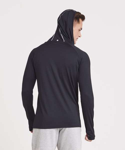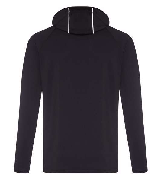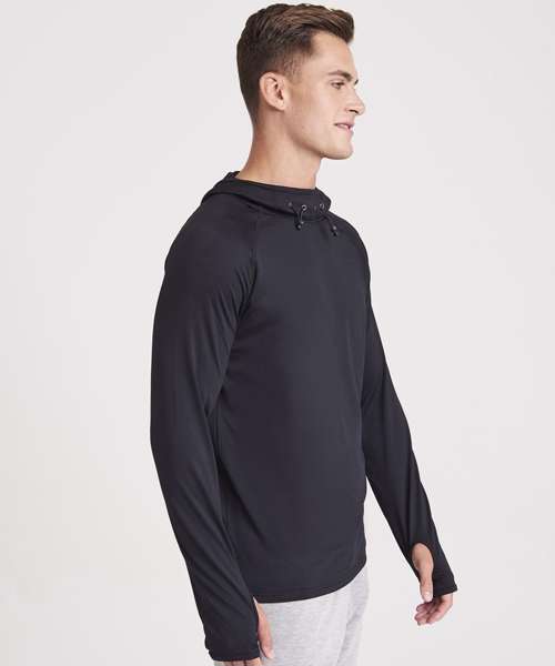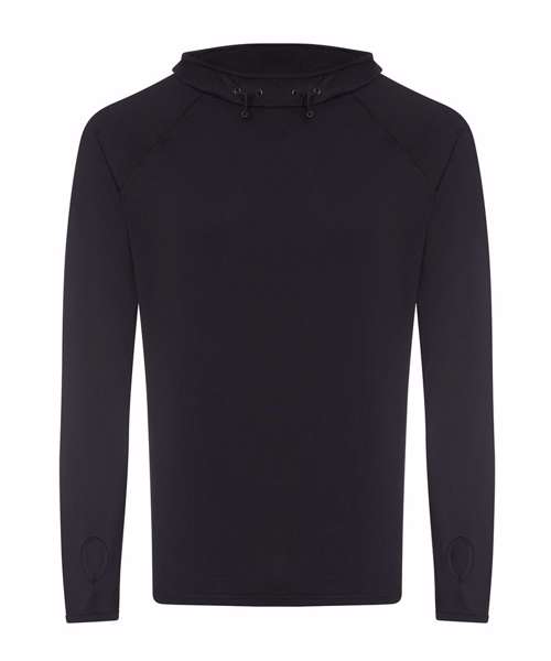 AWDis’ own CoolFit blended fabric containing elastane that provides stretch for comfort and a great fit. Cowl neck style hood. Sporty fit. Ideal for layering. Raglan sleeve design creates ease of movement. Reflective elements on hood for low light conditions. Reflective tab on back of neck helps keep ear phone cords in place. Toggled hood. Flat-lock stitching detail. Thumb hole opening. Simple tear off label makes it perfect for rebranding.