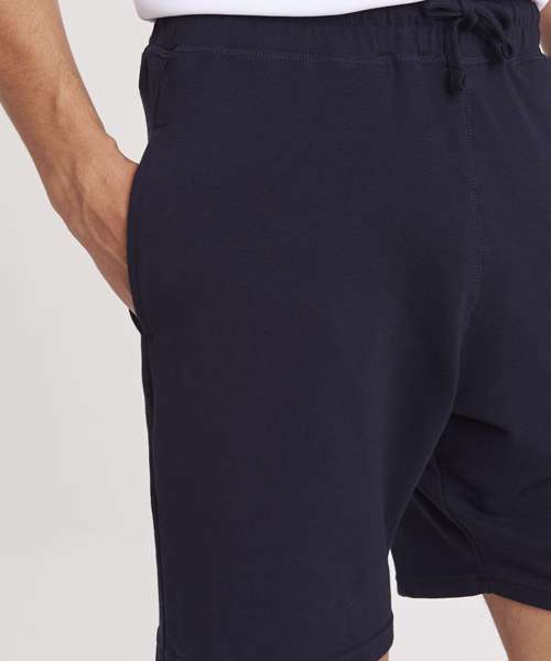 Sports jog short made from polyester/ cotton/elastane blended stretch fabric. Elasticated waistband with drawcords for fit and pockets at side seams.