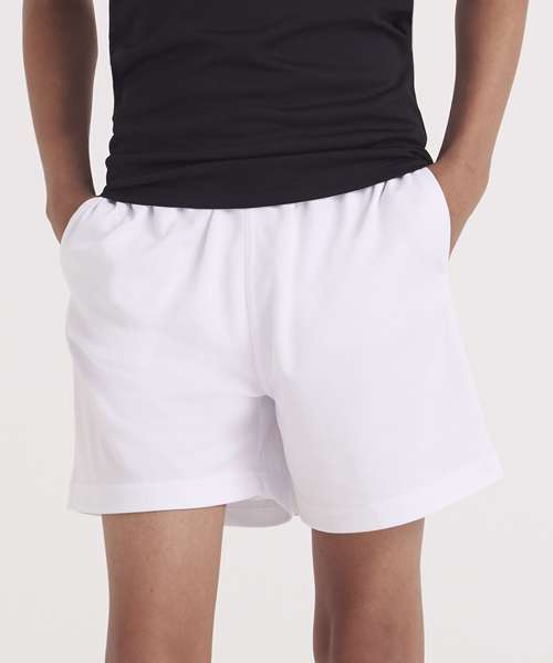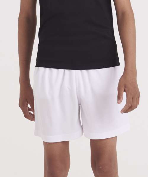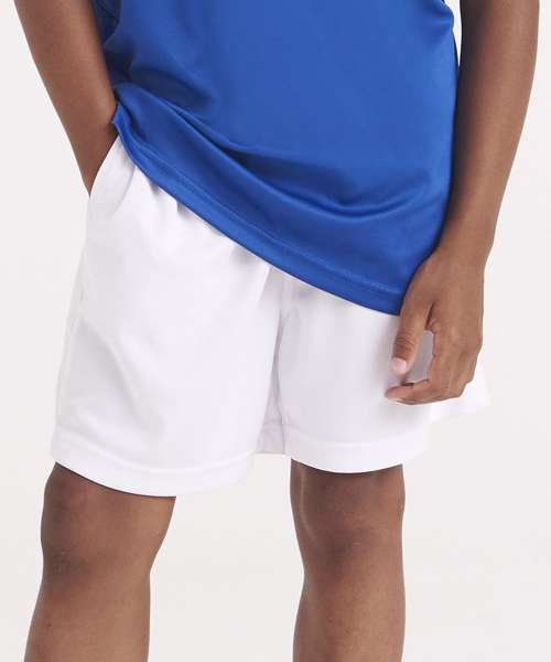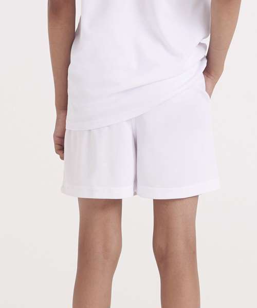 These kids’ shorts feature an elasticated waistband; a mesh lined inner, side pockets for storage, sweat wicking Neoteric™ fabric and plenty of room to move during sporting activities.