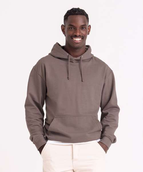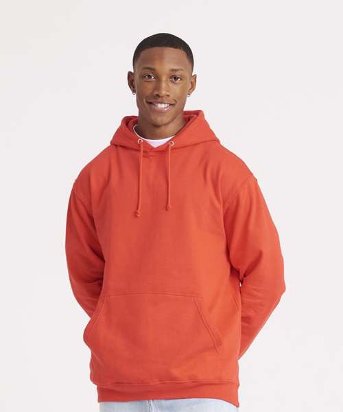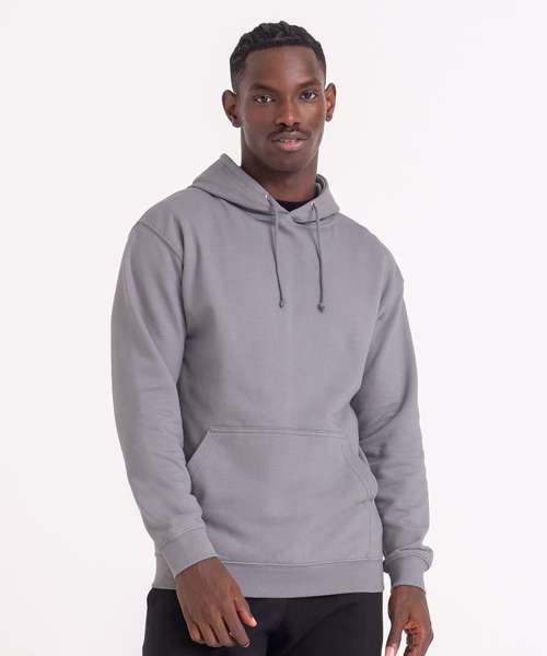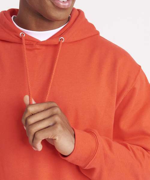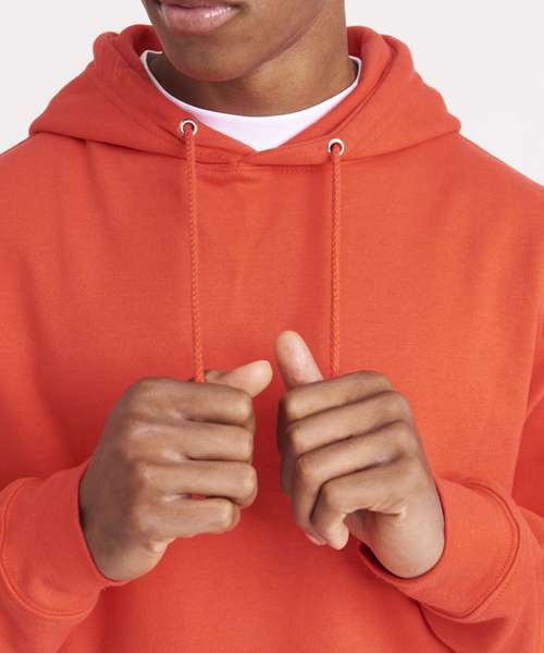 Twin-needle stitching detailing. Double fabric hood with self coloured cords. Kangaroo pouch pocket. Ribbed cuffs and hem. Soft cotton faced fabric creates ideal printing surface. Simple tear out label makes it perfect for rebranding. Brushed inner fabric.