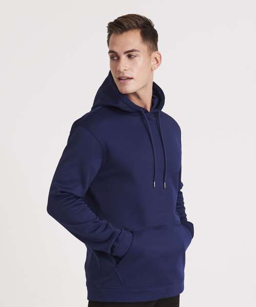 Sporty fit. Twin-needle stitching detail. Self-coloured round drawcords. Three-panel double fabric hood. Kangaroo pouch pocket. Simple tear out label makes it perfect for rebranding. Brushed inner fabric. Self-fabric cuffs and hem.