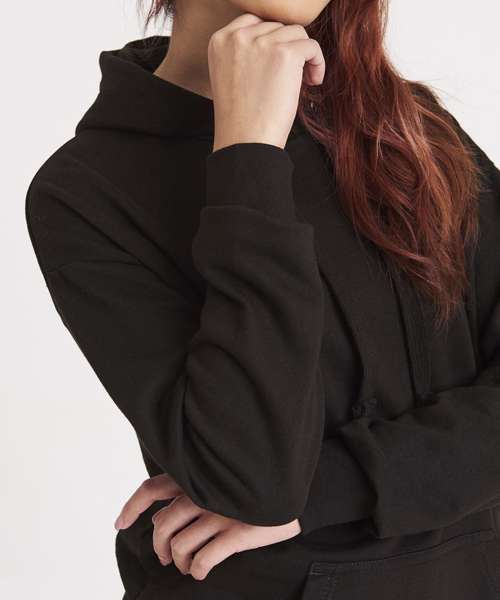 Women's relaxed fit. Longline cut design. Twin-needle stitching detail. Double fabric hood. Flat lace drawcords. Kangaroo pouch pocket. Soft cotton faced fabric creates ideal printing surface. Simple tear-out label makes it perfect for rebranding. Brushed inner fleece.
