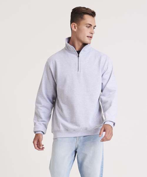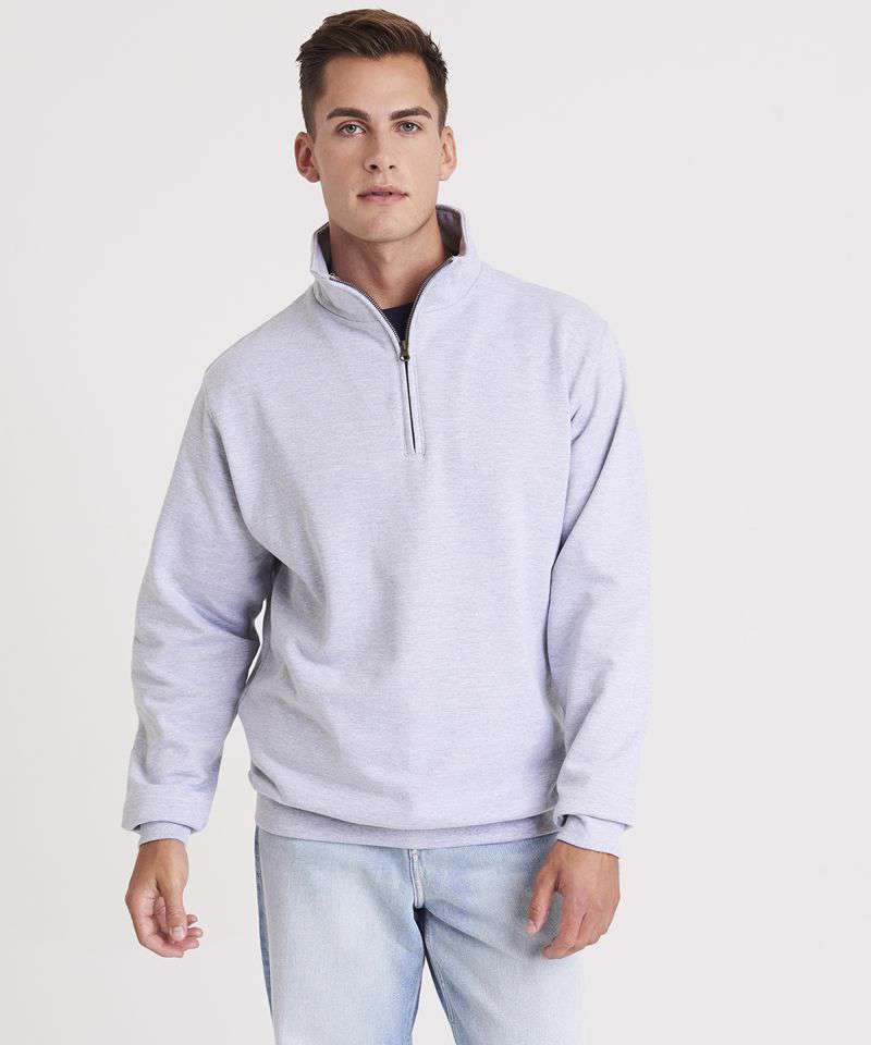 ¼ zip neck. Metal YKK zipper and puller. Ribbed cuffs and hem. Soft cotton faced fabric creates ideal printing surface. Simple tear out label makes it perferct for rebranding. Brushed inner fleece.