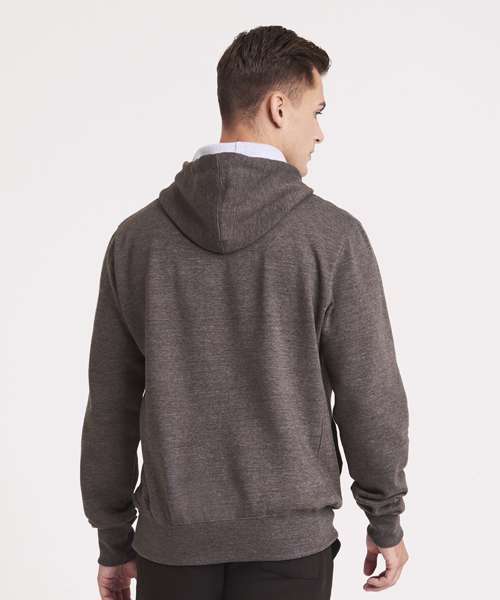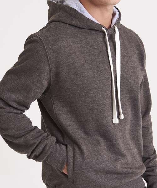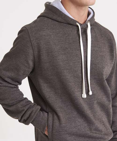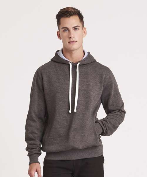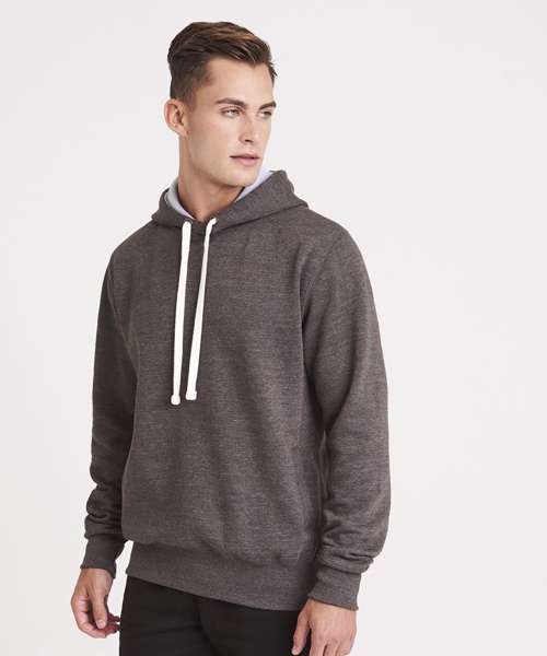 Overlock stitching detail throughout. Double fabric hood with Heather Grey waffle fabric inner. Chunky white flat lace drawcords. Deep ribbed cuffs and hem. Soft cotton faced fabric creates ideal printing surface. Simple tear out label makes it prefect for rebranding. Side panels for stylish fit. Side pockets. Pull over Hoodie. Brushed inner fleece.
