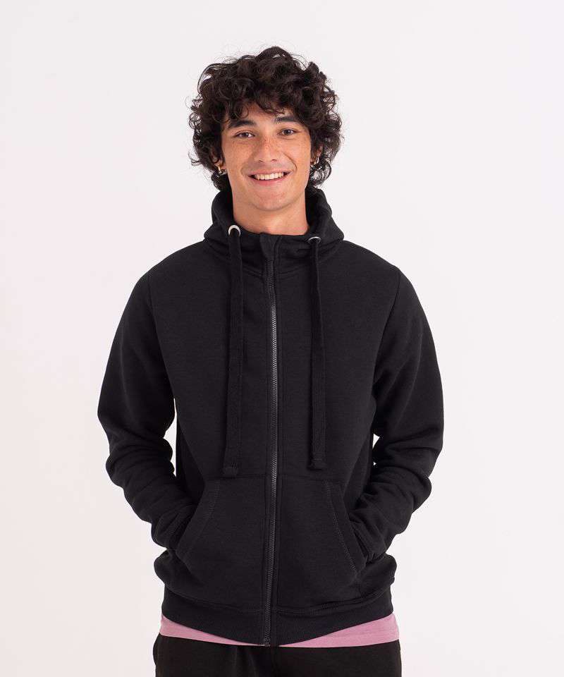 Heavyweight full zipped hoodie. Twin-needle stitching detail. Three panel hood with single Jersey inner. Flat lace drawcords. Split kangaroo pouch pocket. 2 x 1 ribbed cuffs and hem. Plastic zipper and puller with chin protector. Flat lock stitching detail on pocket. Soft cotton faced fabric creates ideal printing surface. Simple tear out label makes it perfect for rebranding. Worldwide Responsible Accredited Production (WRAP) certified production. Brushed inner fleece.