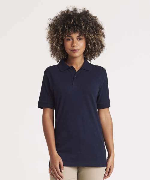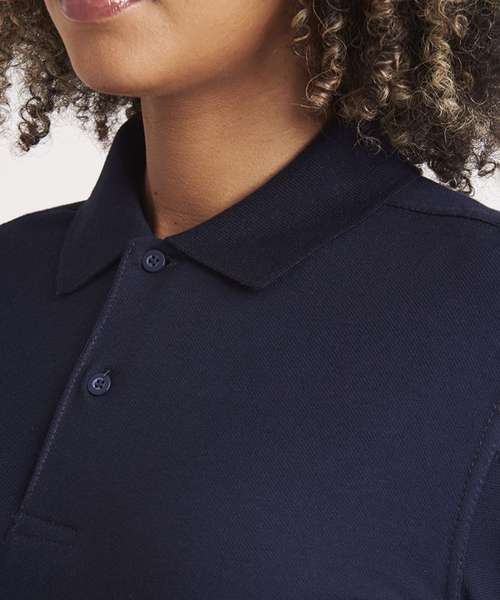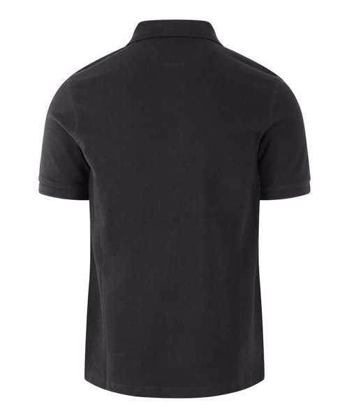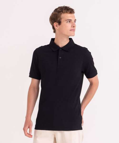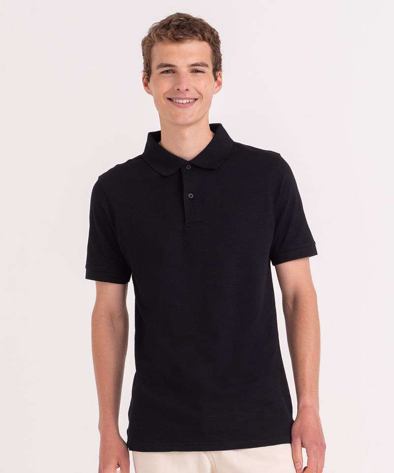 Modern and stylish fit with short sleeves and side vents. Two button placket with dyed-to-match buttons and spare button. 1x1 ribbed flat collar and cuffs. Cuffed sleeves. Taped neck. Twin-needle stitching detail on sleeves and bottom hem. Size label only, for easy rebranding - colour coded black for Unisex. Short sleeves. Excellent surface for printing and embroidery.