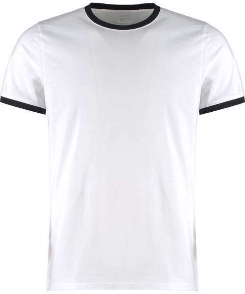 1x1 ribbed folded neck and cuff in contrast colour. Self coloured, self-fabric back neck and shoulder tape. Twin-needle hem. Kustom Kit® tear-out back neck label.