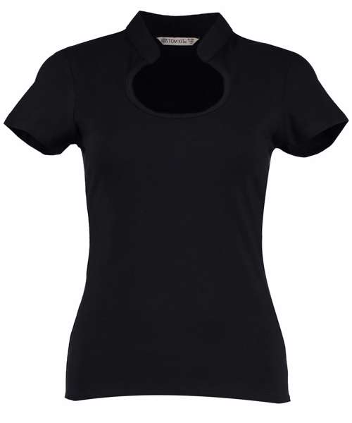 The stretch fabric in this keyhole neck top ensures a perfect fit. Made in a heavy weight cotton jersey it is smart durable and cool to wear, suitable for any business environment.
