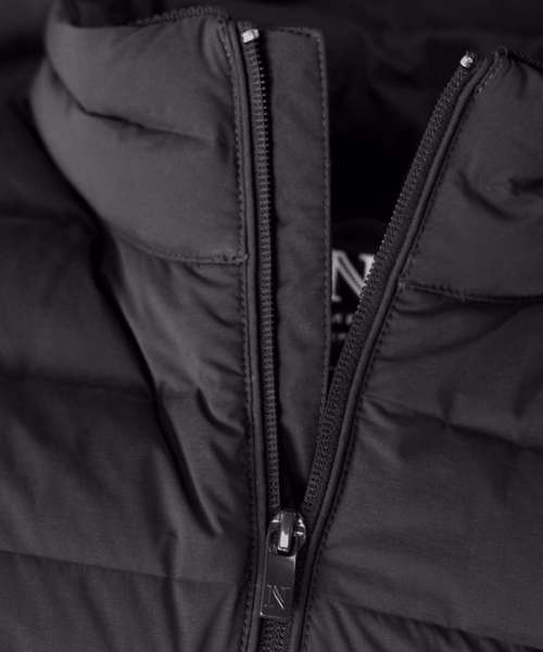 Certified recycled fabric. Loom-woven chamber technology. Certified down with 650+ fill power. Reverse zip detail, with zipped inner and side pockets. Two-way stretch fabric. Water-repellent finish – Bionic Finish® ECO.