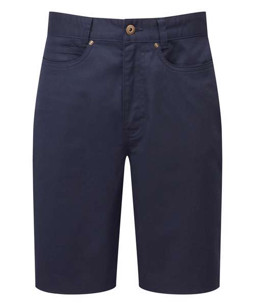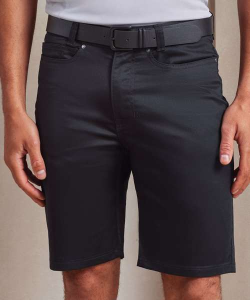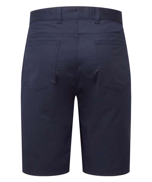 Men’s chino shorts with a touch of elastane for comfortable stretch performance. To the waistband there are loops to facilitate a belt, a metal button and a hook and bar for secure fastening. Covered YKK zip fly and side pockets with rivet detail for a typical ‘chino’ look. Two patch pockets to the reverse. Finished with a double turned hem.