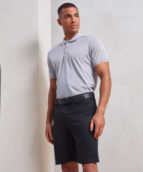 Based on the popular chino jeans, these men’s chino shorts are styled with a covered zip fly fastening and button to the waistband. There are loops on the waistband to facilitate a belt, two side pockets with rivet detail and two patch pockets to the reverse. Finished with a double turned hem, they are a great option for the warmer months and offer a more casual and playful approach to corporate dressing. A touch of elastane through the fabric provides an element of stretch for maximum comfort.