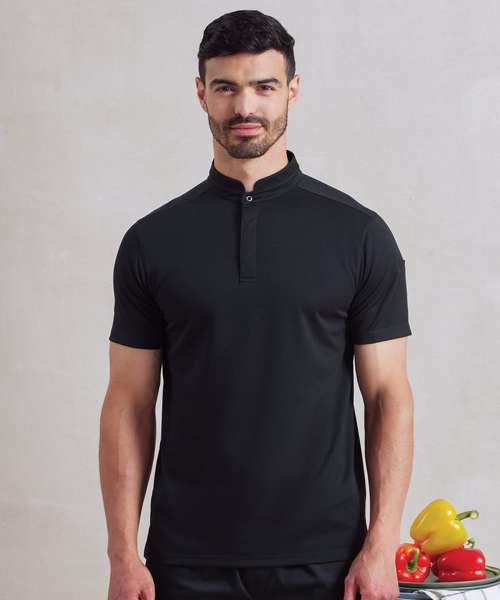 This short sleeve chef’s shirt is made with Premier’s Coolchecker® fabric, guaranteeing a moisture-wicking and breathable performance. Offering value for money, it’s a great solution for those working in the catering and hospitality industries, designed with a press-stud-fastening neckband and a mandarin collar stand, while a covered placket conceals two press stud buttons. To the reverse, there’s a press-stud button tab on the neckband to hold an apron in place and a mesh-back panel to provide airflow through the fabric; and the left sleeve has a useful pen pocket. Side slits in the hemline allow movement through the shirt and provide a pleasing silhouette. Made from 100% certified recycled polyester.