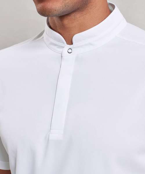 Short sleeve shirt in Premier’s moisture-wicking, breathable Coolchecker® fabric. Mesh back panel provides ventilation and airflow. Banded neckband with single press-stud button. Mandarin collar stand. Covered placket with two press-stud buttons. Press-stud button to the reverse to hold an apron in place on the neckband. Pen pocket on the upper left sleeve. Slide slits on the hemline. Made with 100% certified recycled polyester.