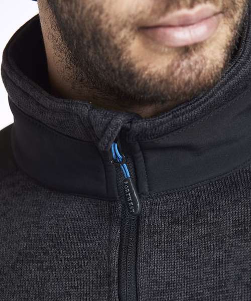Contemporary work jacket made from a soft knitted fleece fabric ensuring that once you put it on you won't want to take it off. Reinforced shoulders and back panels offer added durability in heavy-use areas. Interchangeable zip pullers in blue red and lime green are supplied for easy integration of corporate colours. Designed with a modern fit this jacket hosts a range of practical features including a longer back length a rubber zip puller and multiple pockets.