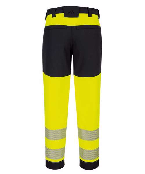 The Women’s PW3 Hi-vis stretch trousers are made from lightweight, high-performance, four-way stretch fabric, offering maximum range of movement while working. They feature flexible HiVisTex Pro segmented reflective tape, a diagonal zip pocket, reinforced knees, a contrast seat panel, and a partially elasticated waistband for added comfort.