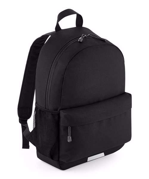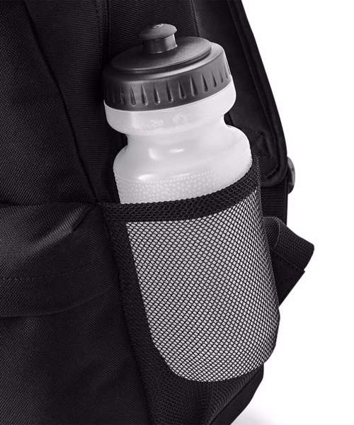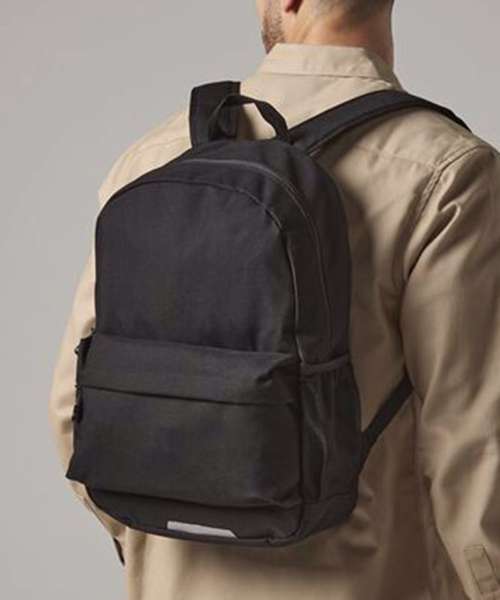 Enhanced visibility reflective accents. Two mesh pockets/ water bottle holders. Internal identification label. Zippered main compartment. Zippered front pocket. Internal slip pocket. Padded back panel. Padded adjustable shoulder straps. Grab handle. Reach certified.