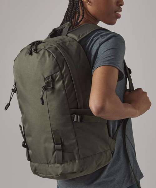 TearAway label for ease of rebranding. Classic outdoor styling. Trekking pole attachment points.Internal zippered pocket with key clip. Expandable side pockets. Padded breathable back panel. Compression straps Adjustable waist and chest straps. Water-resistant fabric. Padded adjustable shoulder straps. Reach certified.