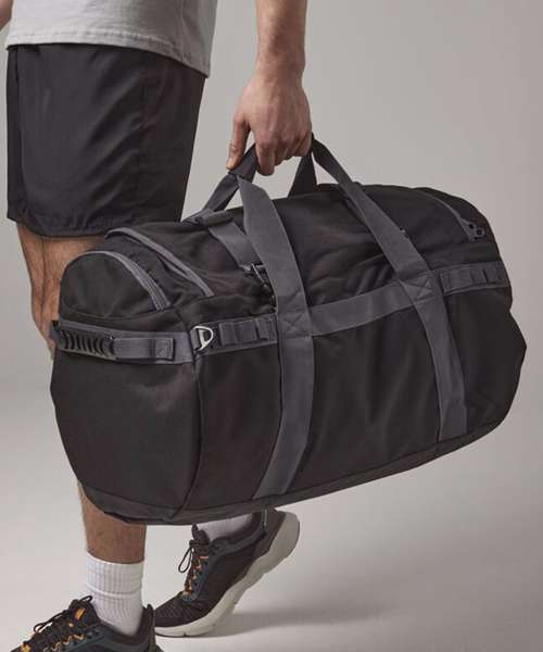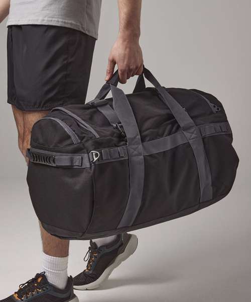 Heavy duty construction. Foldaway backpack shoulder straps. Grab handles. Compression straps. Internal mesh pockets. Locking main zip. Padded hand grip. Reach certified.
