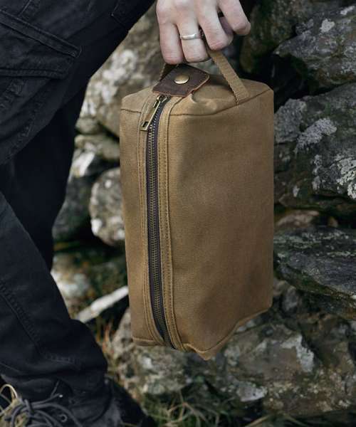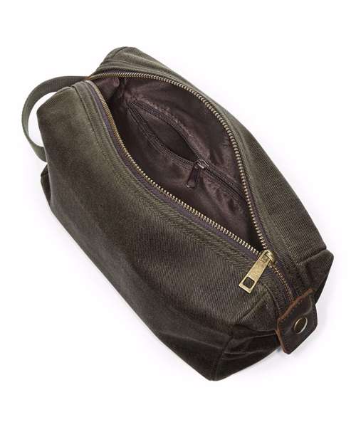 This Heritage waxed canvas wash bag is quintessentially British in its style and craftsmanship. Featuring a curated selection of heritage-inspired details like brass effect fittings and genuine leather accents, this waxed cotton canvas makes one stylish travel caddy.