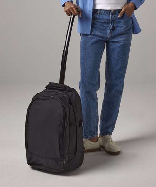 Aircraft cabin compatible. Zippered front pocket, organiser section, large main compartment. Compressions straps. Retractable mono tube locking tow handle. Pack away shoulder straps. Durable integrated skate wheels. Neoprene padded grab handle. Name card holder.