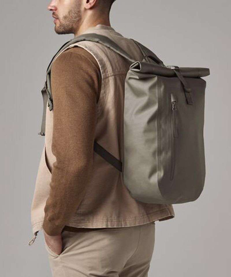 Delivering all the sleek style benefits of a relaxed roll-top backpack, with the addition of waterproof PU-coated fabric, this is where fashion meets function. This is a must for those who commute on foot or by bike, complete with a waterproof main compartment, so things like technology and paperwork stay dry and protected, whatever the weather. Also available in a larger version (QS575), this streamlined bag offers a more compact silhouette for practical, contemporary styling.