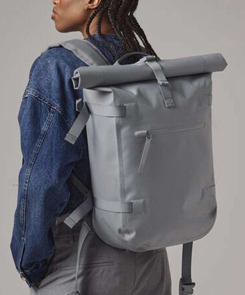 Bringing all the sleek style benefits of a relaxed roll-top backpack, with the addition of waterproof PU-coated fabric, this is where fashion meets function. This is a must for those who commute on foot or by bike, complete with multiple weatherproof compartments so things like technology and paperwork stay dry and protected in all seasons. Also available in a lite version (QS573), waterproof roll-tops are the epitome of practical, contemporary styling.